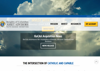Knights of Columbus Asset Advisors is an SEC registered investment adviser that maintains a principal place of business in the State of Connecticut. For further information about KoCAA's business operations, please consult the Firm's Form ADV disclosure documents, the most recent versions of which are available on the SEC's Investment Adviser Public Disclosure website at www.adviserinfo.sec.gov. KoCAA, is a wholly-owned subsidiary of Knights of Columbus, the world's largest Catholic fraternal service organization, with more $24 billion in assets under management. Please visit: KofCAssetAdvisors.org for additional information.