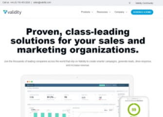 For over 20 years, tens of thousands of organizations across the world have relied on Validity solutions to target, contact, engage, and retain customers – using trustworthy data as a key advantage. Validity’s flagship products – DemandTools, BriteVerify, Return Path, Trust Assessments and GridBuddy – are all highly rated, #1 solutions for CRM data management, email address verification, inbox deliverability and avoiding the spam folder, and grid CRM applications. These solutions deliver smarter campaigns, more qualified leads, more productive sales, and ultimately faster growth. For more information, visit Validity.com and connect with us on LinkedIn, Instagram and Twitter.